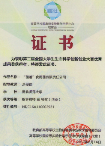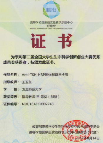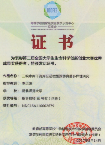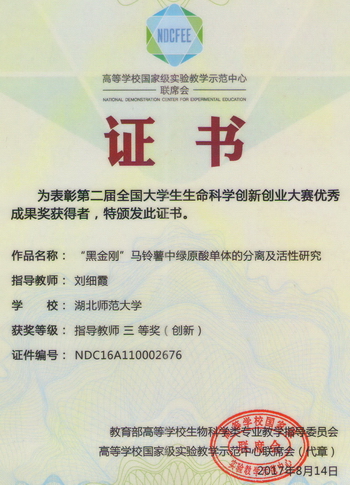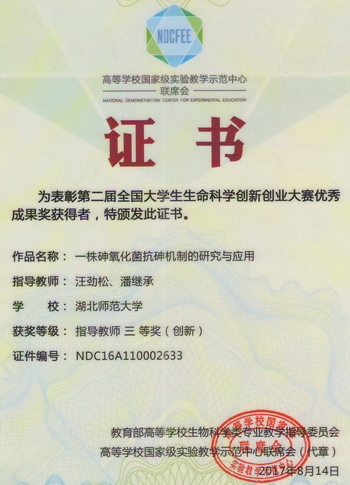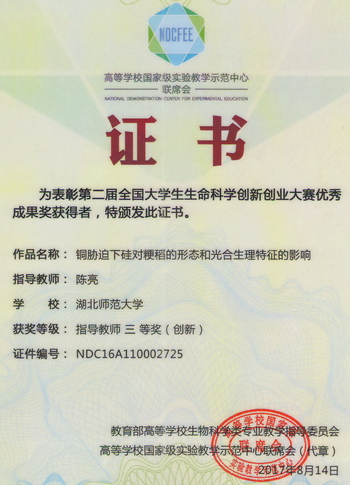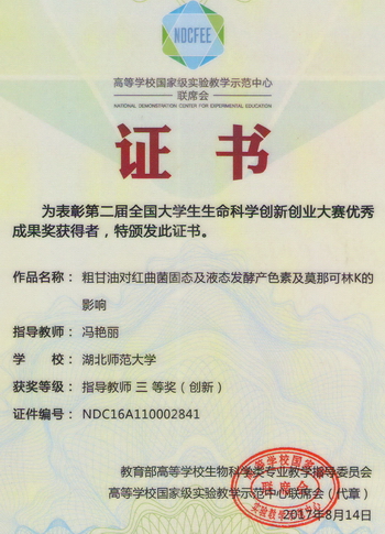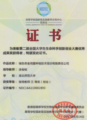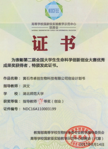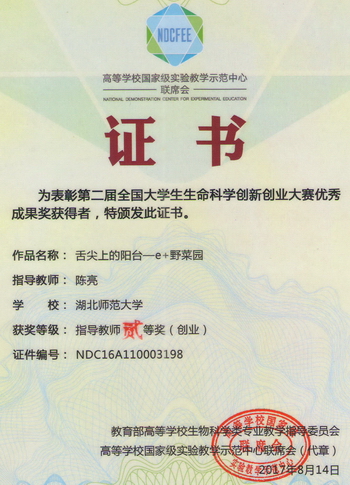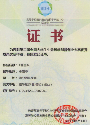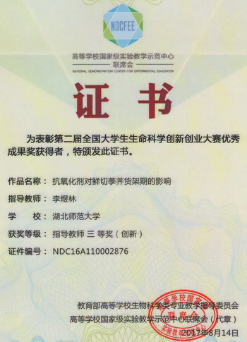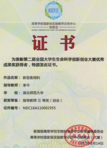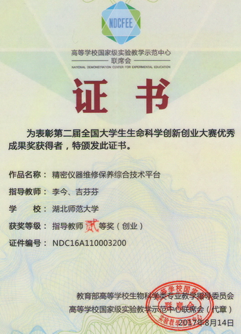 2017全国大学生生命科学创新创业大赛获奖证书(指导教师)