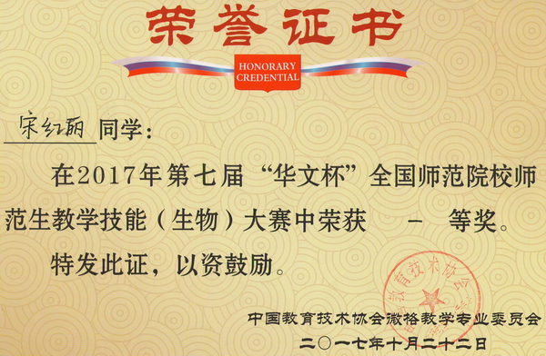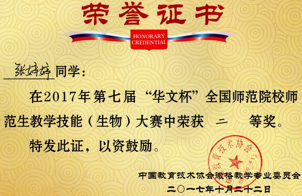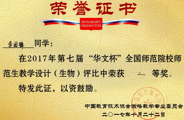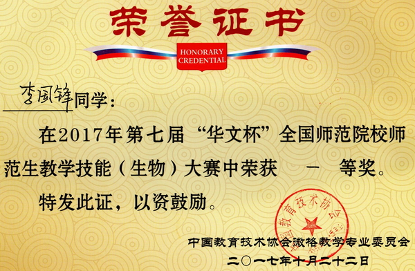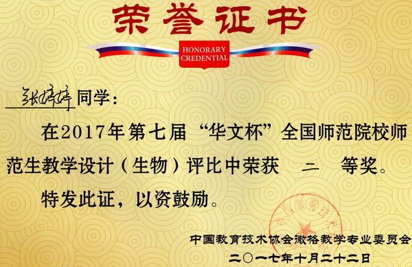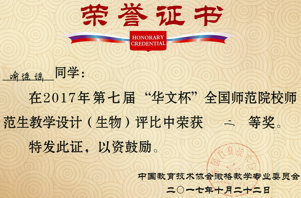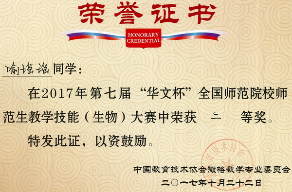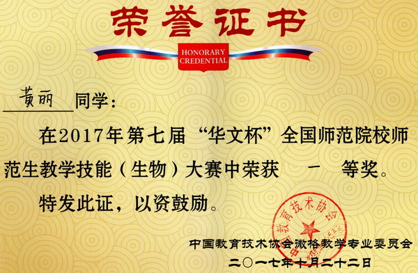 第7届“华文杯”教学技能大赛获奖证书