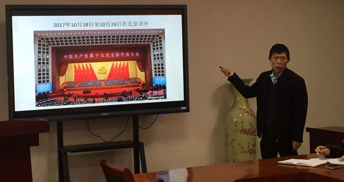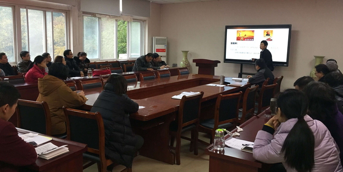 11月30日下午,我院深入学习党的十九大精神报告会在8306会议室举行。党总支书记邵锦震同志做了专题辅导报告,深入解读党的十九大精神,全体教职工参加了报告会。