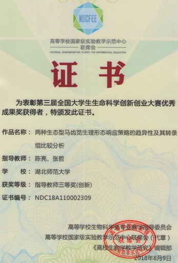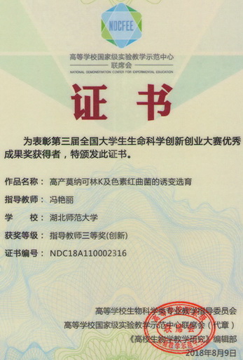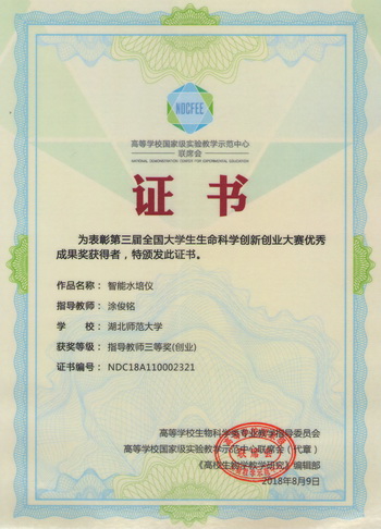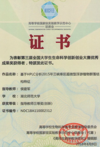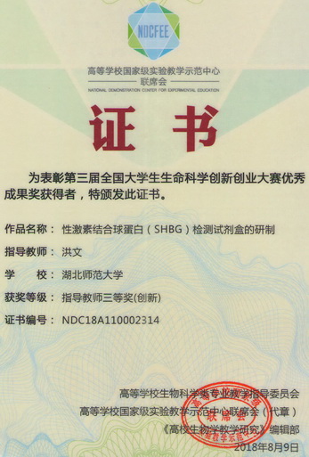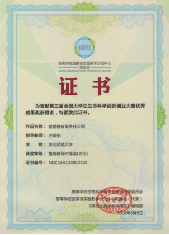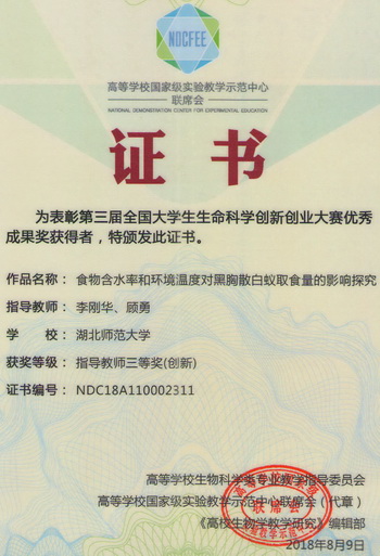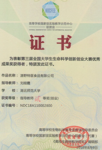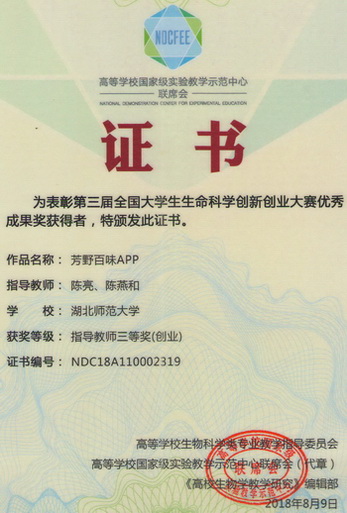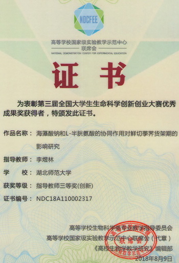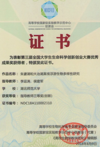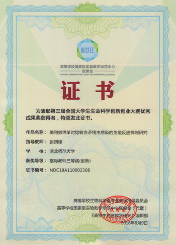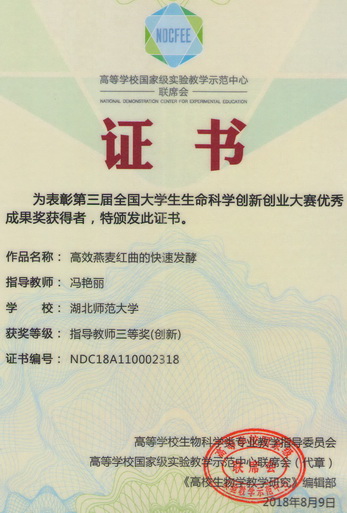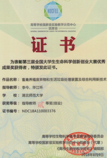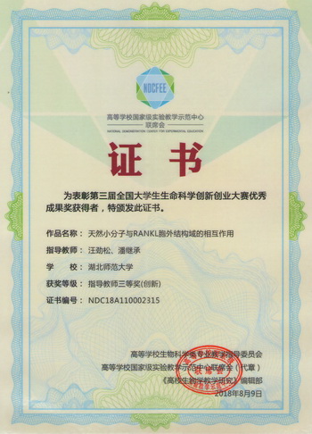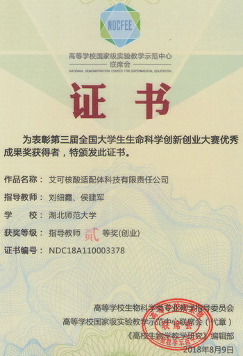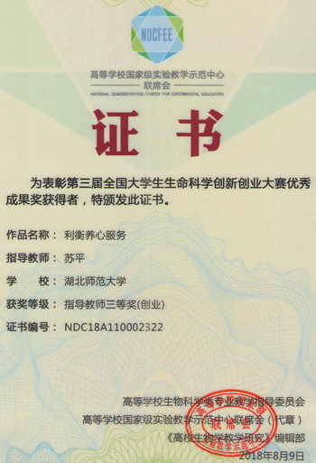 2018全国大学生生命科学创新创业大赛获奖证书(指导教师)