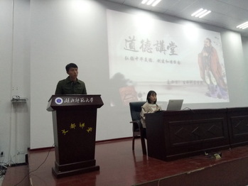 2018年11月29日晚,我院携手保卫处及创新创业学院在文都讲堂开展了道德讲堂宣讲活动。三个单位的师生代表两百余人参加此次活动。