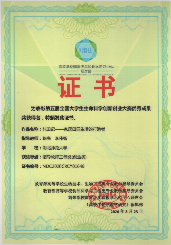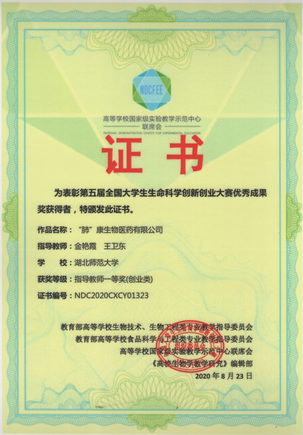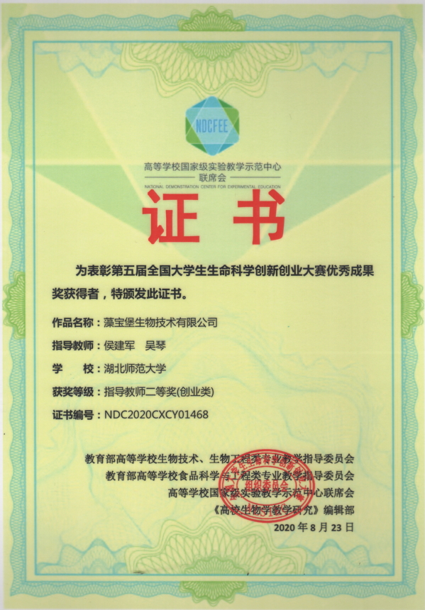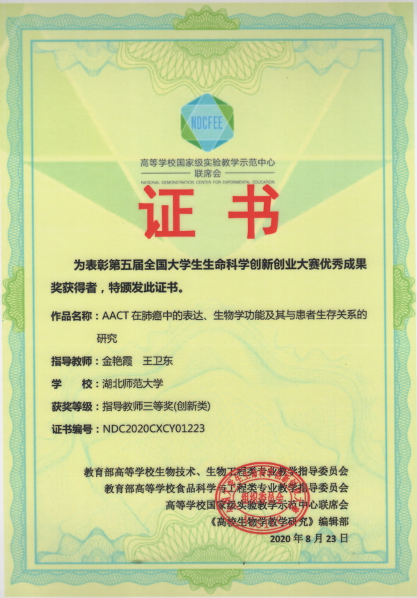 第五届全国大学生生命科学创新创业大赛获奖证书(教师)
