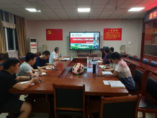 为进一步推广与实践中小学科学探究实践活动与高师科技教育协同发展模式、优化完善生物科学专业人才培养方案,2021年9月15日晚,william威廉英国-新疆师范大学-湖北民族大学生物科学专业联合黄石二中、六中、十四中、沈家营小学以及广东茂名信宜市第三中学等省内外中小学虚拟教研室以线上线下的形式举办了一场别开生面的交流研讨会。新疆师范大学英国威廉集团副院长刘彬、湖北民族大学生物科学与技术学院周志副院长和雷红灵教授以及相关中小学学科负责人线上参会;我院院长侯建军、生物科学专业虚拟教研室主要成员王卫东、李刚华等在8306会议室线下参会,特邀教务处副处长黄海军全程指导。会议由副院长陈亮主持。