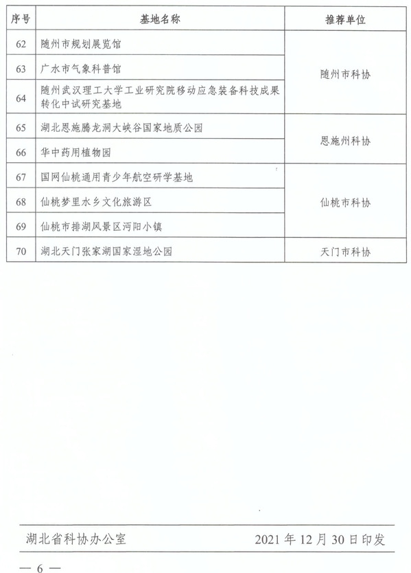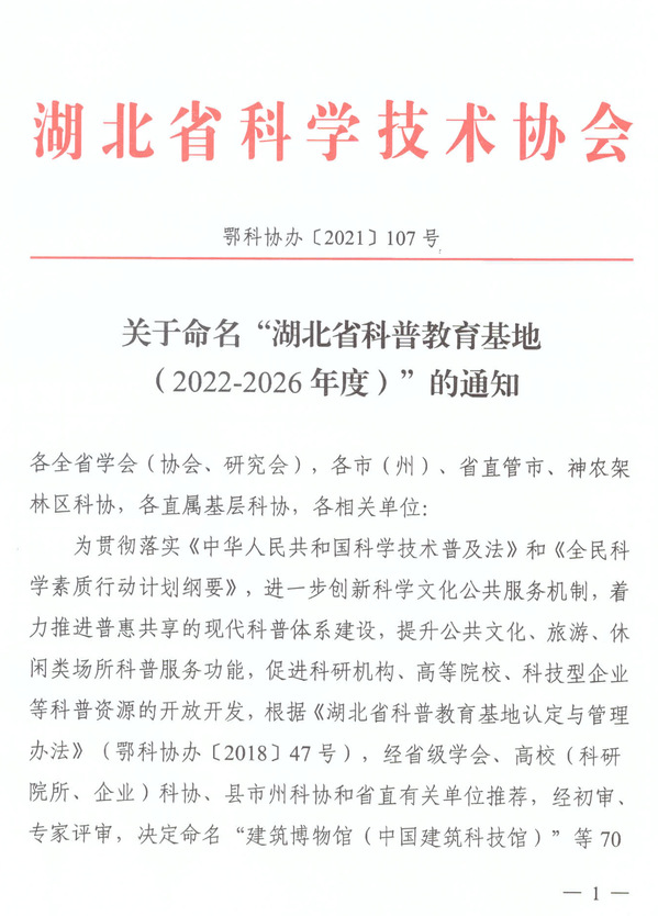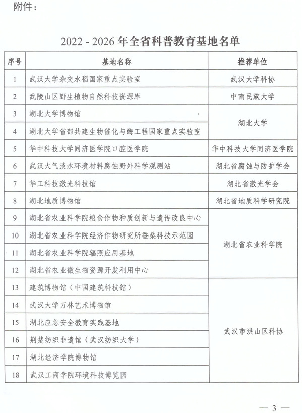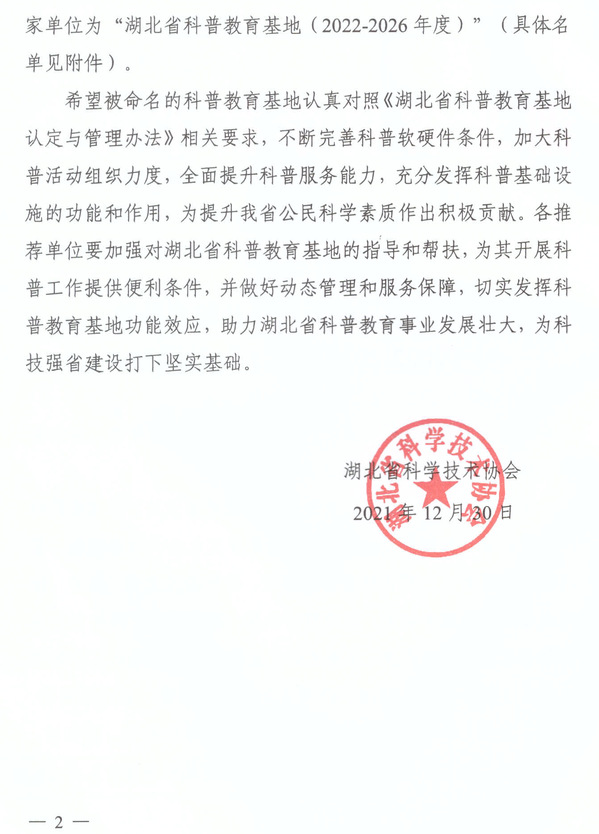近日,湖北省科协印发《关于命名“湖北省科普教育基地(2022—2026年度)”的通知》(鄂科协办〔2021〕107号),我院生物标本馆被命名为2022-2026年度湖北省科普教育基地。