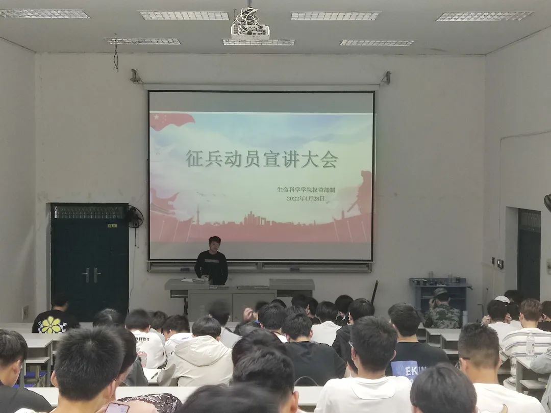 宣讲会伊始,由陈雄文书记对同学们进行动员讲话,带领同学们重点解读最新的征兵政策。随后生科1907班退役军人李世豪同学和研究生三年级万进同学依次上台介绍了他们的军营生活,分享了军运会执勤故事,再现了新冠疫情期间防疫执勤的画面,以及成为军人后自己的改变。