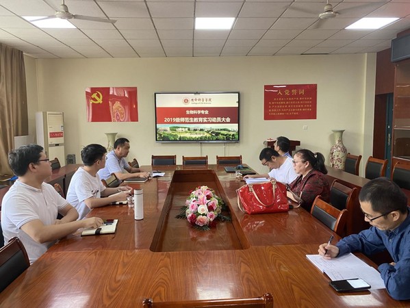 2022年9月1日下午,我院召开了“新疫情形势下2019级生物科学专业教育实习动员大会(线上)”。学院党委书记陈雄文,实习指导教师江涓、席德强、顾勇和张润锋,2019级生物科学专业班主任夏险、熊雨飞以及全体学生参加会议。会议由副院长陈亮主持。