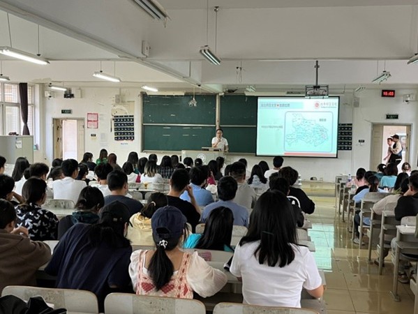 宣讲会上,涂俊铭从威廉概况、人才培养、科研平台、招生方向、学生就业前景和学生们关注的研究生生活、奖助体系、招生政策等方面进行了全面而详细的介绍,让同学们对我院有了较为深入的了解。宣讲会现场同学们踊跃提问,宣讲团队教师与学生们进行了热烈互动和交流。