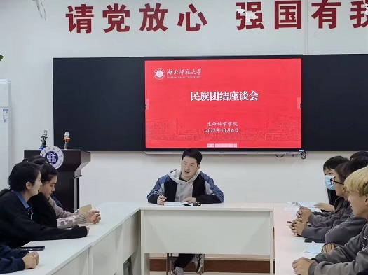 座谈会伊始,各少数民族学生代表依次上台进行自我介绍,并且讲述了各个民族的风俗习惯、地产特色和民俗趣事。随后他们围绕校园学习、生活、民族融合等方面踊跃发表自己的观点,现场交流热切,气氛融洽。随后辅导员张良老师,单紫云老师和李冬老师就同学们提出的关于专业课学习、生活节奏的调节、人际关系交往、入党准备等问题耐心细致地解答,同时讲解我校针对少数民族学生的补助政策。此外特别为新疆少数民族同学推荐我校特色少数民族食堂—石榴园食堂,同学们对以后的大学生活充满了期待。最后由张良老师进行总结发言,他再次热烈欢迎大家加入生科院这个大家庭,并且希望在座的少数民族同学们能够好好学习,丰富充实自己的大学生活,立志学好扎实的专业知识,成为新时代有梦想,有魄力,有责任,有能力的“四有”优秀大学生。
