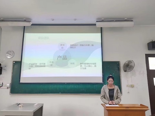 本次活动分为项目介绍、评委提问、评委点评三个环节。首先选手依次上台借助所制作的PPT,从创作背景、创新点、实际用途等方面介绍各自的创业计划。介绍结束后由田学泽老师进行项目相关的提问,并从实际用途、产品受众等角度给选手相关建议。随后,由赵振豪和王张卓娅进行点评,他们点出选手们的不足之处,指出设计既要注重创新型也要有可行性,同时在PPT的制作上也应当注意风格的选择以及内容的分布。鼓励他们不断提升自我,不断打磨,在未来展现更好的作品。