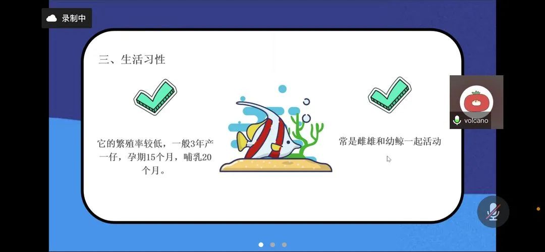 今天晚上的第一课堂由徐灿灿同学主讲,她为小朋友们带来神奇的动物——独角鲸,并以故事的形式进行导入,使课堂变得具有故事性,让同学们深入其中,感受深海的魅力。