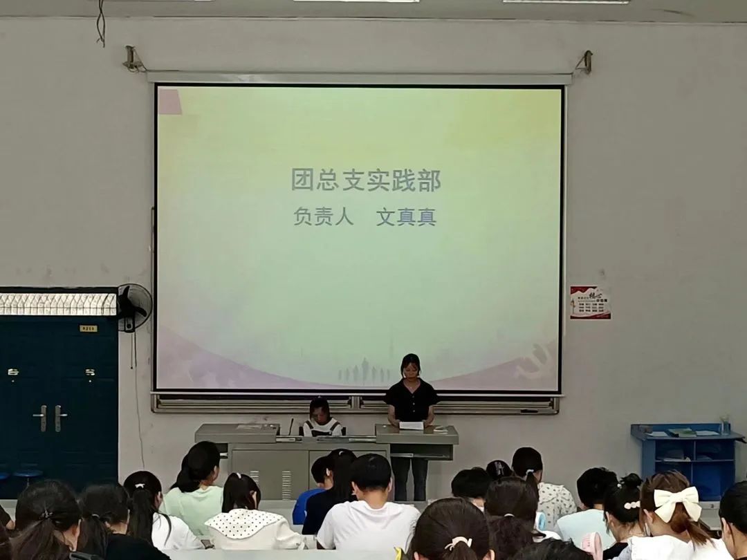 会议第四项,由团总支实践部负责人文真真进行总结发言。她表示社会实践活动意义非凡,希望各位同学能够积极投入到此次社会实践活动中,学有所成,实践成长。