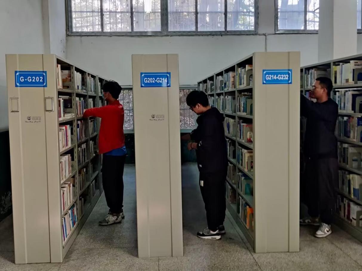 在图书馆劳动中,劳动成员被分为四组,分别负责二到五楼的图书搬运。在安静的图书环境中,同学们细致小心,将图书放到小推车上,送至对应楼层,并分类入架。有条不紊的配合,迅速高效的整理,体现同学们团结协作的精神,使同学们体会到劳动在付出与奉献中的价值。