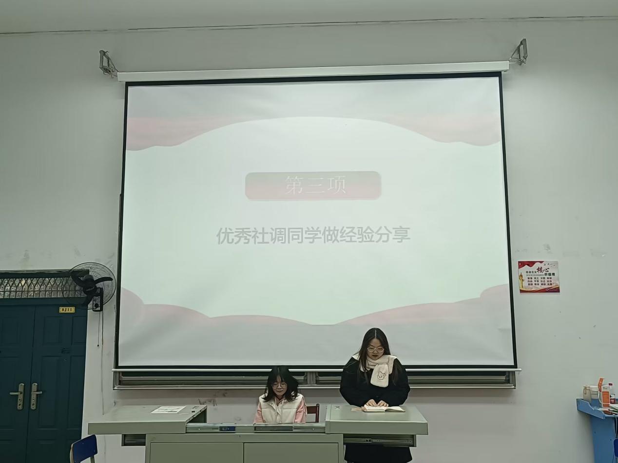 会议伊始,全体起立共唱团歌。随后,张良老师为此次大会致开幕词。他鼓励同学们在寒调中积极展现自我,同时强调社会实践的重要意义并为大家说明了注意事项。随后优秀社调学员徐加雪表明,社会实践需要同学们团结协作,服从组内安排,踏实完成工作,在实践中展现个人风采。之后,由每队负责人依次上台介绍实践队的基本情况,并重点强调了活动的目的、意义、寒调的具体内容、开展形式等,加深队员们对各自队伍的认识。最后,由实践部负责人郑莹莹进行动员发言。她进一步强调要明确寒调任务,认识寒调意义,同时在实践活动中要发挥专业特色,弘扬社会精神,使实践获得实效。