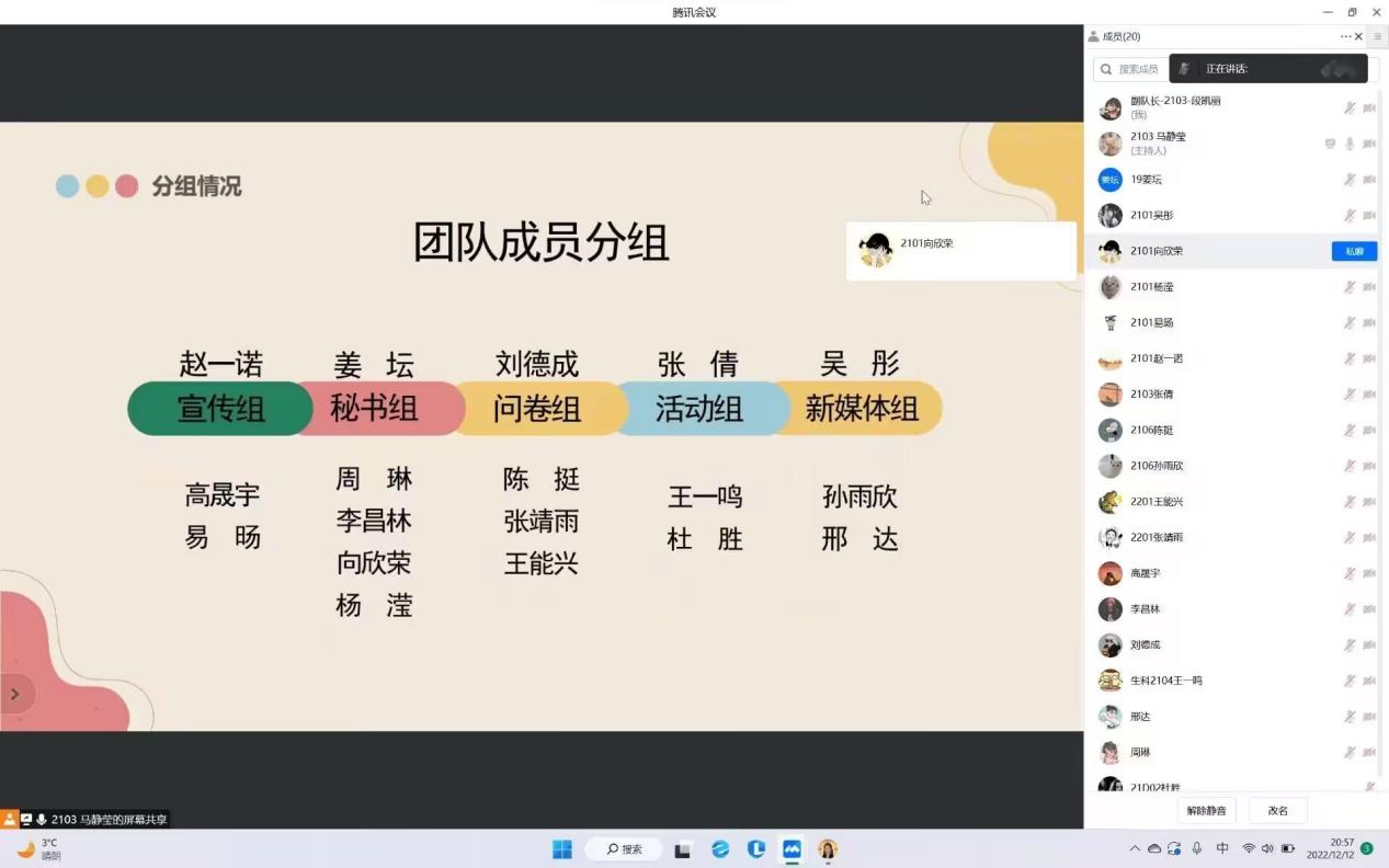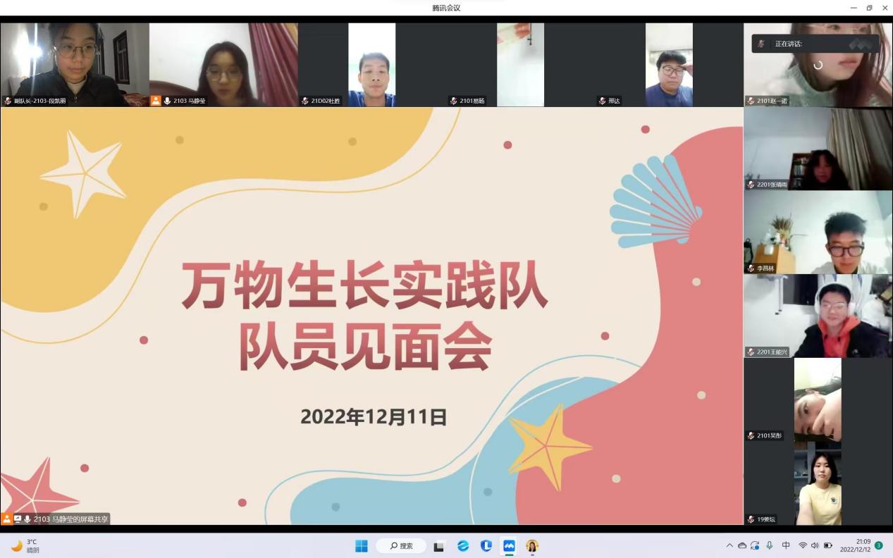 为加深队员对社会实践内容的了解,加强队员间的合作交流,12月12日晚,英国威廉集团万物生长实践队在腾讯会议上召开了队员见面会。参加此次会议的有万物生长实践队全体成员。