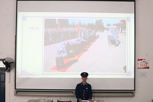 活动伊始,主持人刘赟讲述了退役学生在部队的美好回忆和退役不退伍的精神风采,鼓励大学生积极入伍,为国争光。接着,退役军人冯韬玮向大家讲述他精彩的军营故事。从新兵营训练到军队训练……一张张照片深刻展现着参军带给他的改变。最后,冯韬玮同学又给大家展示了一段军营生活视频并向大家详细地介绍有关参军待遇、部队环境等问题。他表明,大学生参军入伍不仅是响应国家的号召,更是对自身的一个提升,是实现人生理想抱负和彰显个人价值的重要途径,希望同学们积极报名,踊跃参军,保家卫国