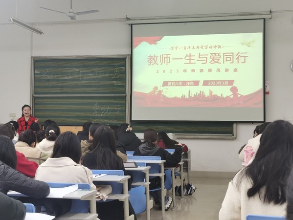 为了使学生及早建立“角色”意识,在组织师范生进行了线上学习性听课和研究性听课之后,学院还积极组织一线优秀教师指导师范生见习工作。2023年3月13日,邀请“黄石名师”甄欢老师做了班级管理经验分享,2023年3月20日,邀请“黄石名师”汪莉老师做了师德师风报告。2023年4月11日,邀请了黄石二中余杰、张智慧,大冶实验高中胡林,黄石六中甄欢、李相安、王景世等一批优秀教师对师范生的说课、讲课活动进行有针对性的指导。