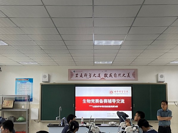 4月19日下午,副院长陈亮深入黄石二中课堂,为二中生物奥赛组学生、生物竞赛教练及生物组教师送上了一堂精彩的生物竞赛辅导课。他从竞赛的准备、知识重难点、评分细则等多方面深入剖析竞赛要点。最后,用2007年周正龙假华南虎照片事件结束本堂课,引导学生如何运用生物与生境适应性的观点及显微镜放大倍数理论去解释那张照片中的华南虎为什么是假的,告诫学生不要死读书,要开阔视野学以致用,引起学生极大的震撼与共鸣。