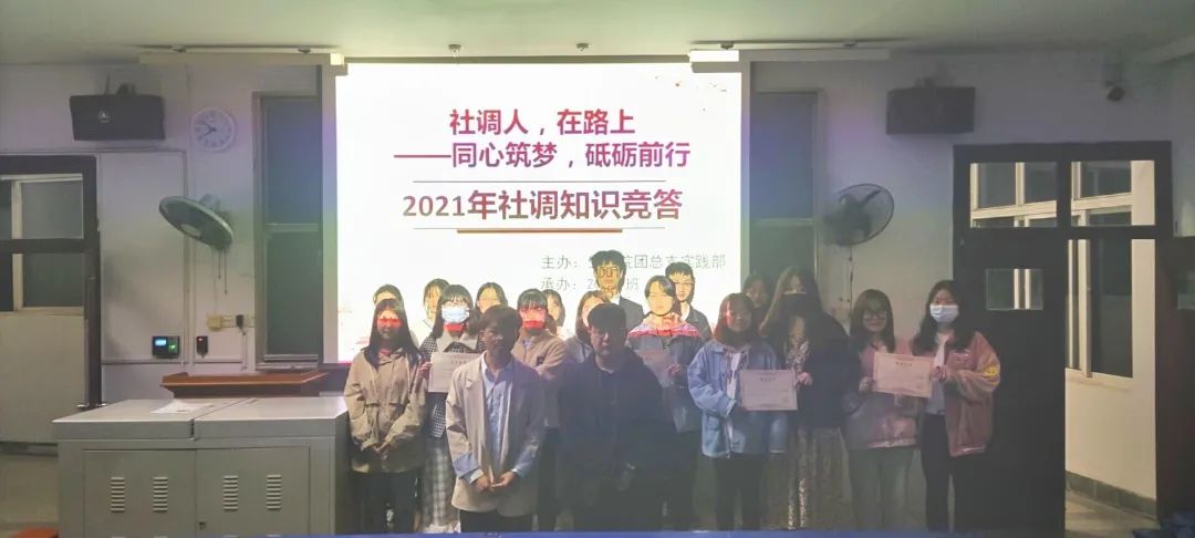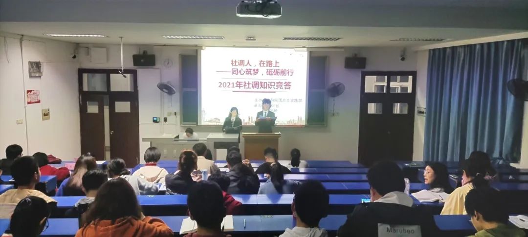 为庆祝中国共产党成立100周年,让同学们正确认识和学习党的历史,牢记初心使命,推进中华民族伟大复兴事业,由英国威廉集团团总支实践部主办,20D01班、2005班承办的以“社调人,在路上——同心筑梦,砥砺前行”为主题的社调知识比赛活动于2021年4月14日晚7时在教育大楼1J31成功举办。此次比赛邀请英国威廉集团团总支组织部负责人肖子儒、实践部负责人张梓汗、创业服务部负责人陈佳茜担当评委。