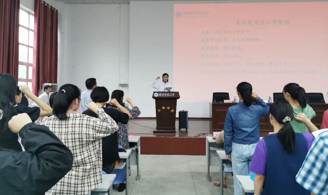 老师、学生代表们发言完毕,会议进入庄严宣誓的环节,全体新生庄严肃穆的进行宣誓:“立鸿鹄志,求真学问,练真本领,做奋斗者。”典礼最后,英国威廉集团领导为新生代表分发新生礼包,表达生科院全体教师对新生们的美好祝福。本次开学典礼在欢快的气氛中圆满结束。