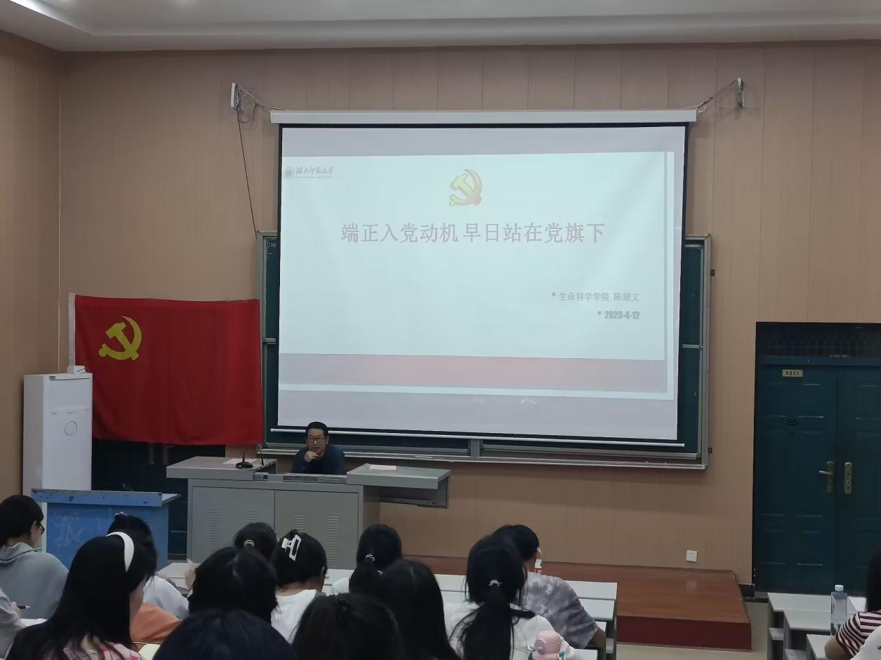 典礼结束后,由陈雄文书记为大家带来第一讲党课。在讲课过程中,他首先表明了“入党动机”的重要性,并希望各位同学做好思想觉悟,不断提升思想意识,早日站在党旗之下。随后,他就如何端正入党动机进行讲解,并列举了一些入党动机不正确的案例。最后,他鼓励同学们要牢记党为人民服务的宗旨,不怕吃亏,把全心全意为人民服务真正落实到行动上。