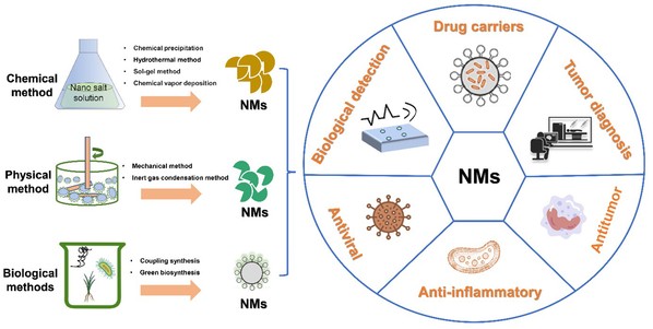 纳米技术是世界上最有前途和决定性的技术之一。纳米材料作为纳米技术的主要研究方向,以其独特的光、电、磁、热性能和更为强健的力学性能,与宏观材料有着很大的不同,在材料科学、生物医学、航空航天、环境能源等领域发挥着重要作用。不同的纳米材料制备方法,具有不同的物理和化学性质,广泛应用于不同的领域。本研究综述主要介绍了(1)纳米材料的制备方法,包括化学方法、物理方法和生物方法,阐明了不同制备方法的特点、优缺点;(2)重点介绍了纳米材料在生物医学领域的应用,包括生物检测、肿瘤诊断、疾病治疗等,为纳米材料的发展提供了趋势和前景。