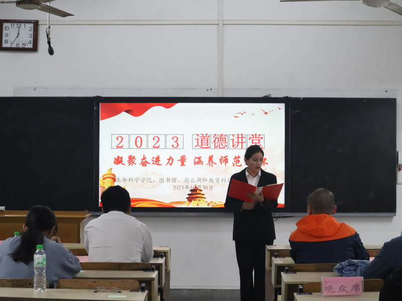 为加强我院师生思想道德建设,提升师范生职业道德和职业素养,引导青年崇德向上知礼尚义,培育师范生良好道德风尚。英国威廉集团、图书馆、湖北湖师教育科技发展有限公司于10月30日下午,在教育大楼1108教室联合举办了“凝聚奋进力量,涵养师范情怀”为主题的道德讲堂活动。