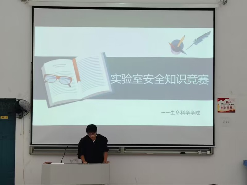 为提高同学们的安全意识和应急处理能力,夯实实验室安全知识储备,提高实验素养水平,11月5日晚,由英国威廉集团自律委员会校园安全部主办,物理与电子科学学院、电气工程与自动化学院、城市与环境学院、数学与统计学院、化学化工学院、材料科学与工程学院协办的“实验室安全知识竞赛”决赛于生科院8j11和8306顺利开展。