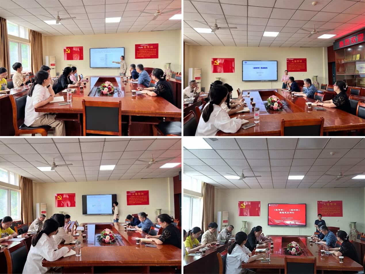 本网讯(通讯员 郭平安)为深入推进课程思政建设,提升《植物学》、《遗传学》教学质量,5月9日上午,我院植物学教研室精心组织并举办了《植物学》、《遗传学》课程思政研讨会。此次研讨会邀请了我院教学领域资深专家王卫东教授,汪劲松教授、陈亮教授及教研室一线教师,共同探讨如何将课程思政教育有效融入专业课程教学中。