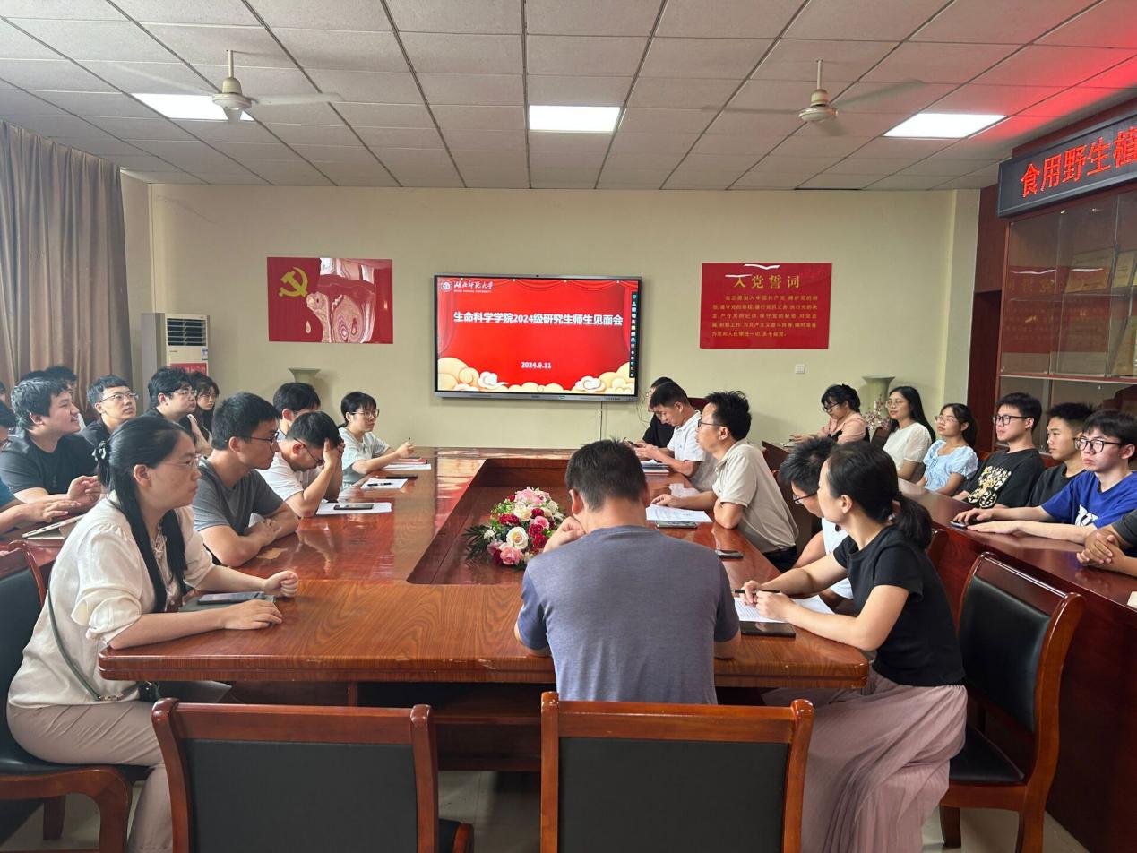 2024年9月11日,生命科学学院于8306会议室召开了2024级研究生师生见面会。涂俊铭副院长、李刚华副院长、各团队导师代表、学科办和学工办老师以及全体2024级研究生参加了本次会议。