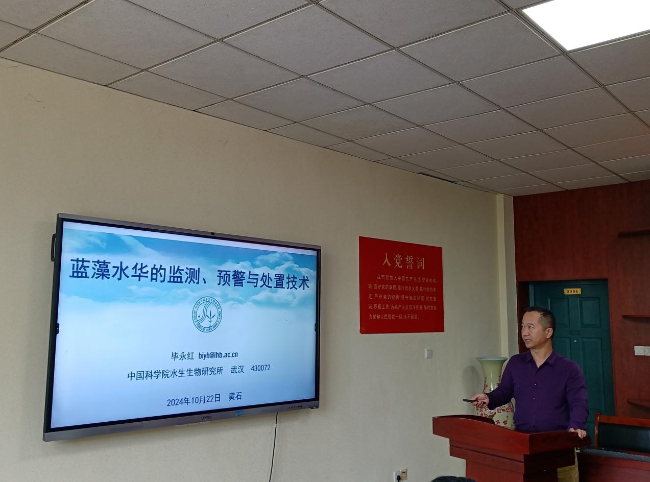 毕永红研究员的报告题目为《蓝藻水华的监测、预警与处置技术》。他串联古今,从最初的大型蓝藻水华事件发生时间——休伦冰期开始讲起,向大家生动地呈现了无处不在的蓝藻其种群优势以及演化进程。紧接其后,他又进一步揭示了蓝藻水华爆发机制及其危害,结合其团队多年工作成果,展示了卫星遥感检测、第五光感仪等六种蓝藻水华监测方式。展望未来,为避免大型蓝藻水华爆发事件,毕永红研究员联系湖北安陆、太湖、滇池等地水华治理的实践经历,对水域生态危害应急灾难的处置提出了多种方式。