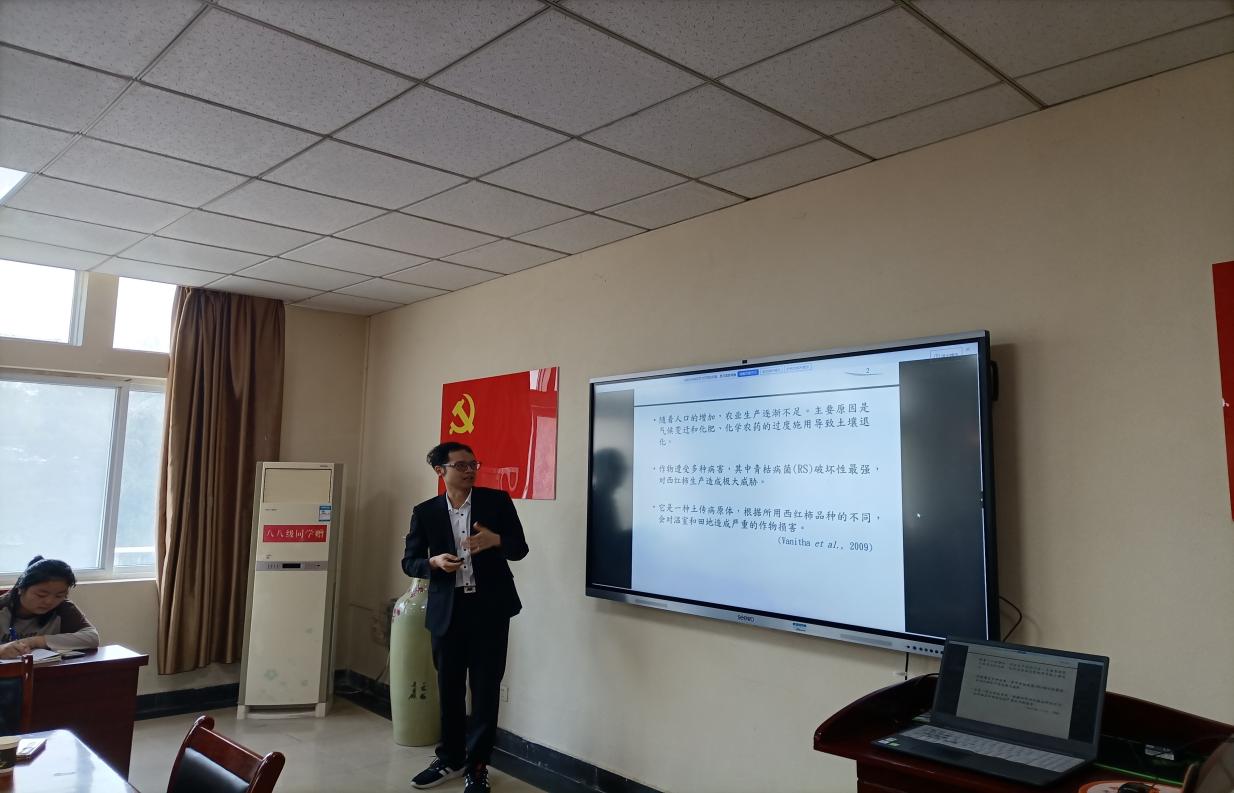 邱凯业作了题为《根圈细菌对抑制西红柿青枯病菌引起的青枯病之效应》的报告。他指出,KYCR 035、KYCR 013和KYCR 085透过抑制西红柿根圈青枯病菌的数量来降低西红柿青枯病的发生率,具有促进植物生长的能力。