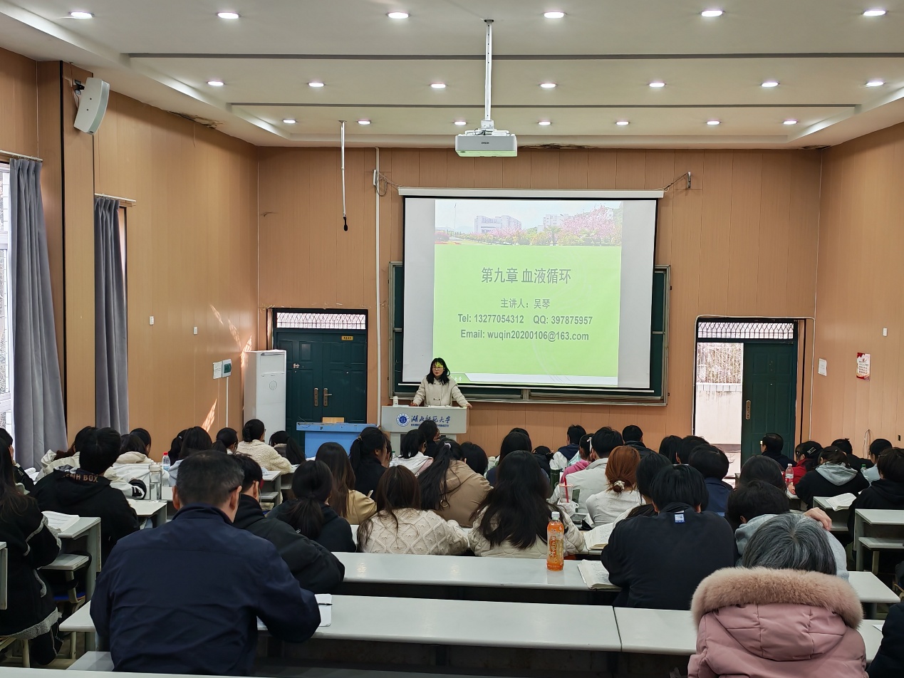 吴琴老师主讲了《人体及动物生理学》中“血液循环”部分。吴老师以其深厚的专业功底和独特的教学风格,为在场师生呈现了一堂精彩纷呈的示范课。课堂上,吴老师巧妙运用多媒体技术、互动式教学、反问等教学手段,结合生活实例,将复杂的知识点深入浅出地讲解,充分调动了学生积极性和参与感,受到了观摩师生的一致好评。吴老师理论知识扎实,讲课条理清晰,语言流畅,重难点突出,内容生动形象,向师生们展现了扎实的教学基本功。