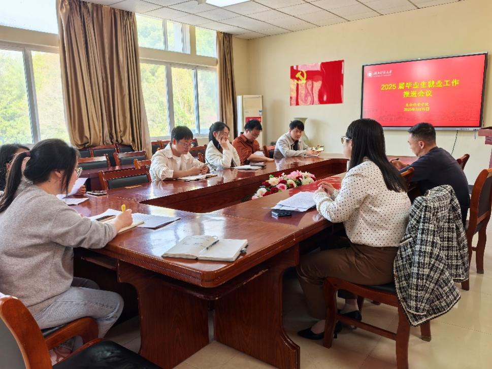 辅导员杨旭琼围绕就业帮扶、就业材料说明、西部计划等相关注意事项作了详尽的说明,并汇报了2025届毕业生最新整体就业情况以及学分清查统计数据。李文静副书记总结了就业工作中的要点:要加强与学生之间的沟通联系,及时帮助学生解决考研复试及就业方面的问题,特别提醒档案及组织关系转接问题。毕业班班主任就学生就业意向以及在就业工作中遇到的问题进行了交流。刘洋书记提出了四点意见:一是毕业季做好学生安全工作,为学生顺利毕业保驾护航;二是做好就业精准帮扶,给予困难学生关怀;三是正确鼓励学生先就业,再择业;四是做好学生和班主任之间的服务工作,加强对师生就业工作方面的帮扶。