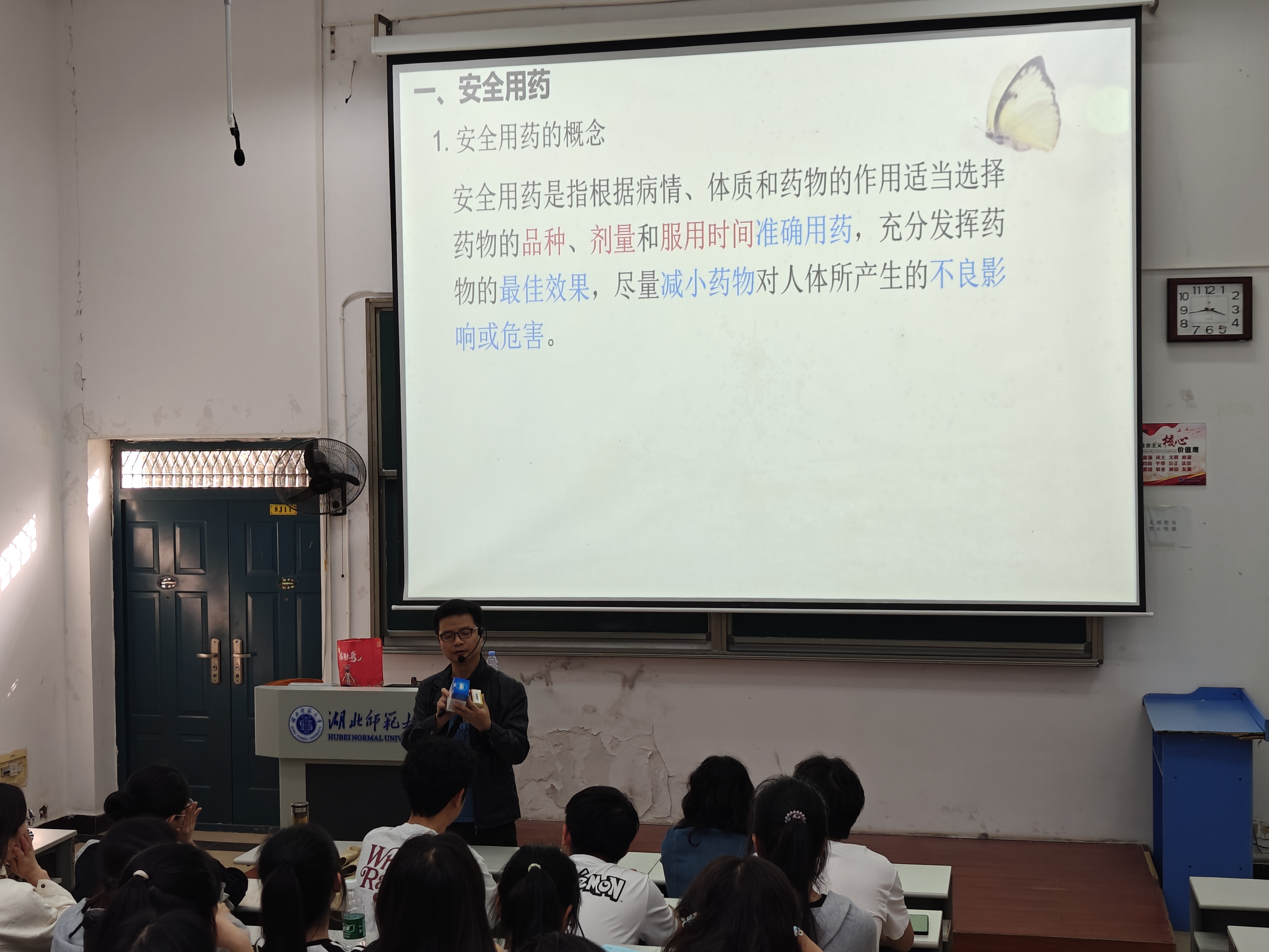 李老师带着自信从容的微笑走上讲台,讲授的课题是«药与急救»。他打破了传统课堂枯燥说教的模式,运用大量鲜活有趣的生活案例,将看似深奥的药物知识深入浅出地娓娓道来。李老师从常见药物的作用机理讲起,结合日常生活场景,介绍了感冒药、退烧药、消炎药等家庭常用药的正确使用方法与注意事项,纠正了许多大众常见的用药误区。接着详细讲解了心肺复苏的全过程和注意事项,同学们全神贯注,课堂气氛热烈。课后,李老师结合多年的教学经历与大家交流了自己的教学体会。
