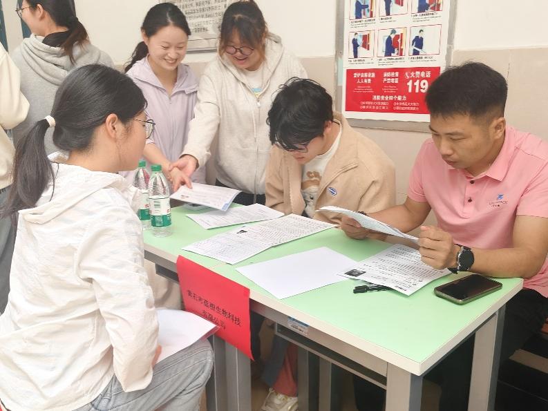 本次招聘会邀请了包括黄石市蓝图生物科技有限公司、鼠来宝(武汉)生物科技有限公司、黄石燕舞药业有限公司、安琪酵母(宜昌)有限公司、湖北臻味永和食品有限公司、湖北惠真源药械有限公司等12家企业,涵盖食品科学与工程、生物技术以及生物相关专业等,提供岗位62个,接收简历134份,初步达成就业意向38人,当场录用3人。