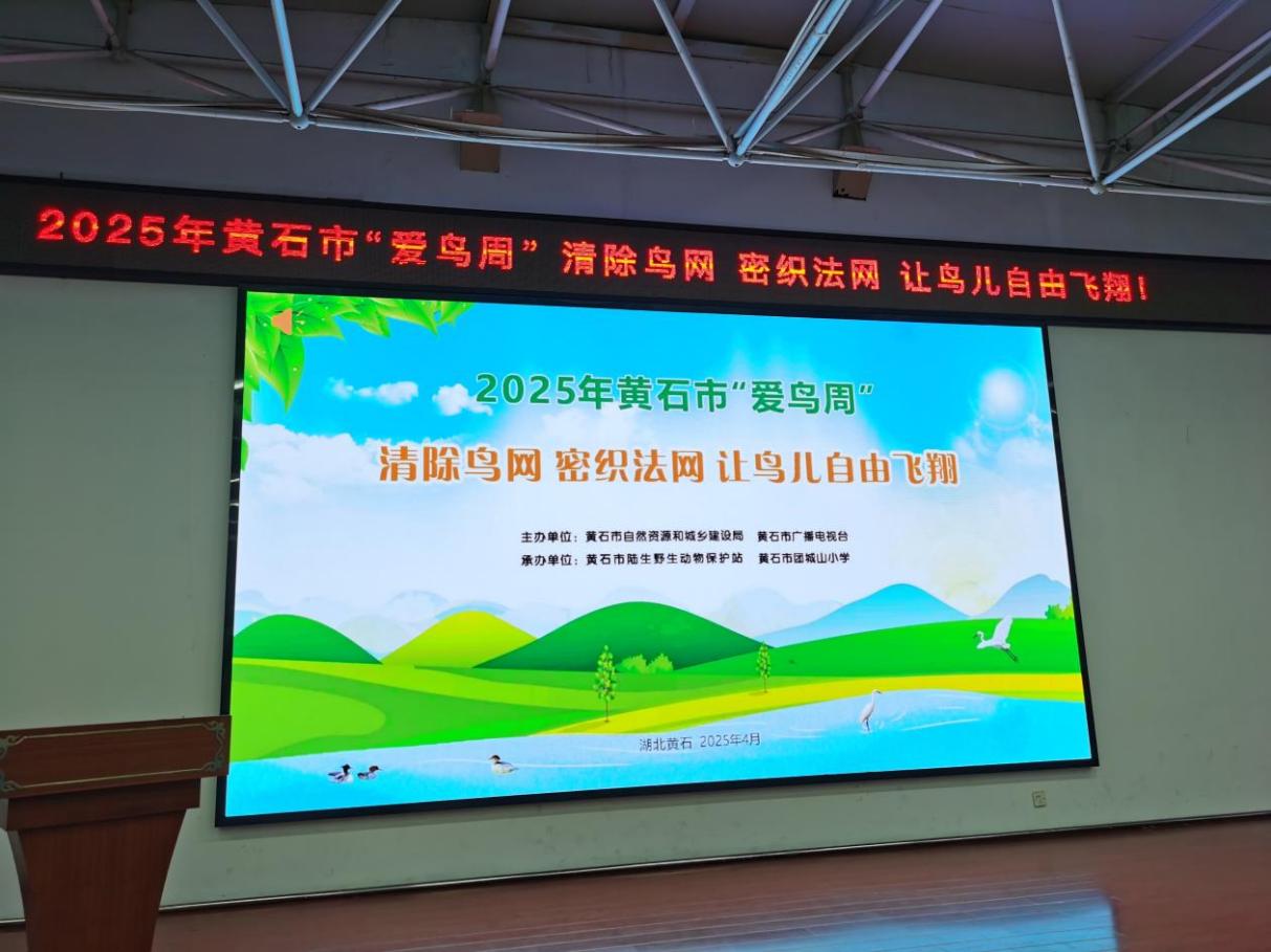 本网讯(通讯员 支立峰)4月21日上午,黄石市2025年“爱鸟周”活动启动仪式在市团城山小学隆重举行。本次活动由市自然资源和城乡建设局主办,市陆生野生动物保护站、黄石广播电视台承办,市公安局森警支队、市市场监管局、团城山小学协办。