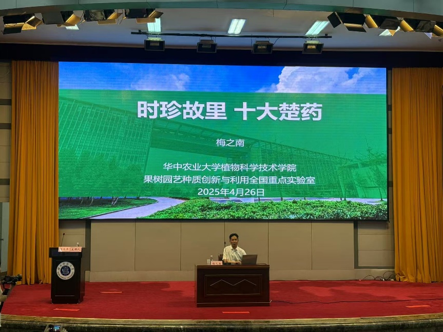 随后,梅之南教授以"时珍故里,十大楚药"为题作首场报告。他从中医药发展的时代背景出发,系统分析了湖北省中医药产业的政策优势、资源特色、文化底蕴及创新潜力,并分享了其团队在楚药资源开发与利用方面的创新性研究成果。