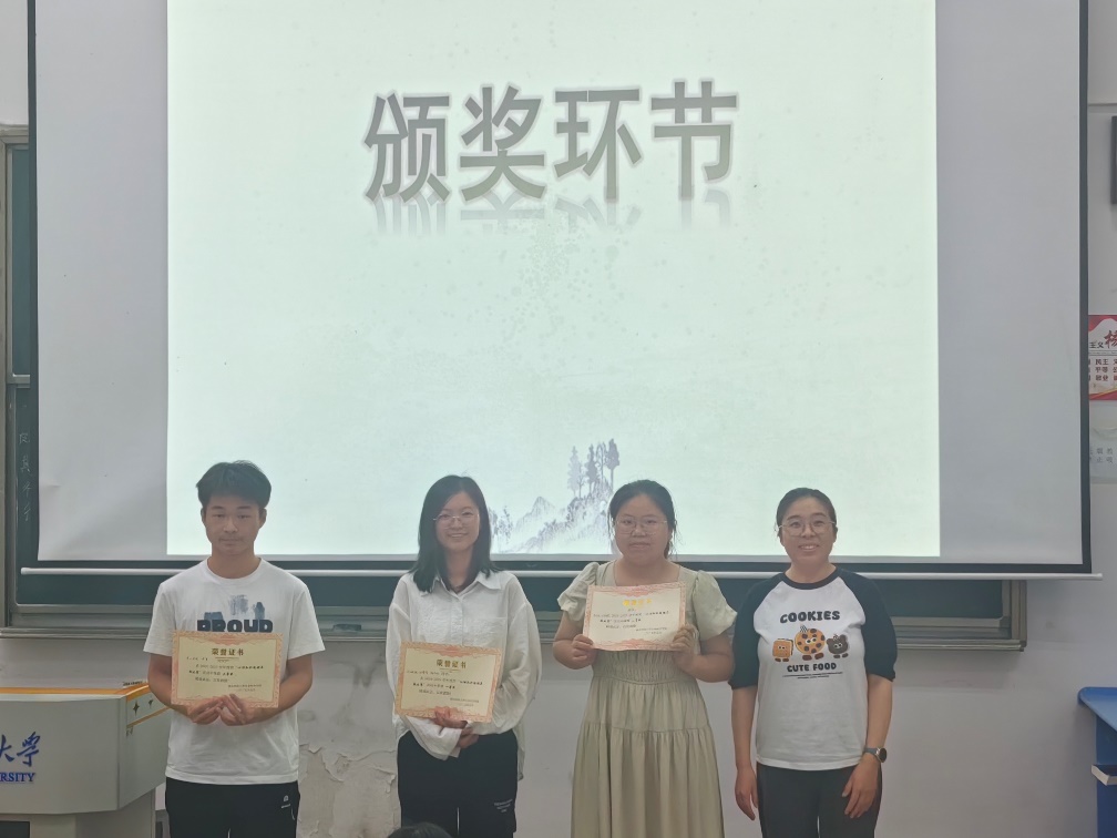 随后进入颁奖环节,王颖老师和张良老师分别为获得一、二、三等奖的选手颁发奖状,并与他们合影留念。