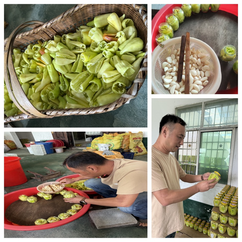 7月28日上午,生科院余翔博士带领研究生团队奔赴海拔800米的刘仁八镇金柯村,在村干部的陪同下深入金柯村辣椒加工车间开展生产指导和科研采样工作。在加工现场,余翔博士查看了企业加工现场,指出加工工序中存在的细节隐患并提出建议(配制液中盐分溶解度不够析出、原料辣椒的分级等)。另外,余翔博士一行还品评了企业新开发的辣椒产品,对产品的色泽、口感、风味等提出中肯建议。