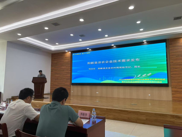 本网讯(通讯员 余翔)8月14日上午,阳新县现代农业产业技术研究院(以下简称“研究院”)承办的2025年阳新县乡村振兴实用技术大赛启动式暨农业科技成果转化合作项目签约活动在县委党校举行。阳新县党组成员、副县长廖洋波出席活动并宣布大赛正式启动。此次活动也是2025年黄石人才周活动中“薪火相传·技兴黄石”主题系列活动的重要组成部分。