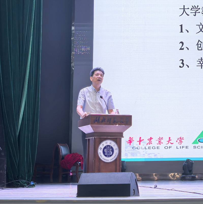 随后,特邀嘉宾华中农业大学生命科学技术学院梁运祥教授为新生带来题为《生物产业发展与我们的机遇和责任》的专题讲座。梁教授结合自身数十年科研与教学经历,用鲜活的事例和翔实的数据,深入浅出地阐释了生物技术在保障国家粮食安全、守护人类健康、推动绿色可持续发展中的关键作用。他勉励同学们唯有勤读立耕,深耕专业知识,方能立己达人,在行业发展中实现个人价值与社会价值的统一。