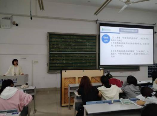 第二环节,教研组长张玲老师围绕 “孟德尔豌豆杂交实验教学中的科学思维培养” 作专题报告,为师范生搭建教学理论与实践的桥梁。报告中,张玲老师首先对吴曼老师的示范课进行专业点评,肯定其通过 “假说演绎法” 带领学生重走科学家探索之路、传递科学态度与创新精神的教学思路,同时结合自身多年教学经验,提出可优化的细节方向,为师范生提供切实可行的教学改进建议。随后,她重点强调科学思维在生物学科中的重要地位 —— 作为生物学科核心素养的关键组成,科学思维不仅是高考重点考查内容,更能有效培养学生的逻辑推理、实验分析、模型构建能力,还能助力学生形成批判性思维,为核心素养的全面提升筑牢基础。