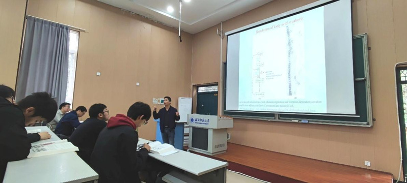 本次示范课聚焦于《生物化学》中的“脂肪酸的合成”部分。他凭借深厚的学术素养和鲜明的教学特色,为现场师生带来了一节高水平的教学展示。在教学过程中,张老师综合运用互动讨论与启发式提问等多种方式,将复杂的理论内容转化为易于理解的知识点,有效激发学生主动思考与课堂参与热情。整堂课教学设计严谨,讲解层次分明,语言表达精准,在突出重点、化解难点方面展现出扎实的教学功底。