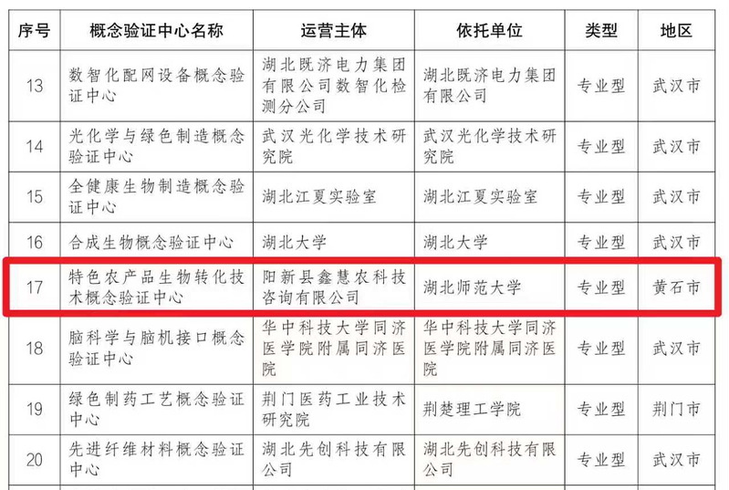 (通讯员 谢鹏 刘军)近日,从湖北省科学技术厅传来喜讯,由阳新县现代农业产业技术研究院(以下简称“研究院”)牵头、william威廉英国作为依托单位申报的“特色农产品生物转化技术概念验证中心”(以下简称“中心”),正式入选湖北省概念验证中心培育建设名单,成为研究院打通农业科技成果转化“最初一公里”、推动创新链与乡村振兴产业链深度融合的关键科创平台。