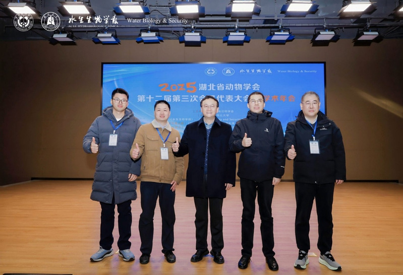 (通讯员 秦文权)2025年12月27日,湖北省动物学会第十二届第三次会员代表大会暨学术年会在武汉顺利召开。本次大会由湖北省动物学会主办,湖北大学承办,得到了《水生生物学报》《Water Biology and Security》编辑部及武汉动物学会的鼎力支持。来自省内各高校、科研院所的100余名专家学者和青年学子齐聚一堂,围绕动物生态保护和遗传资源利用、动物发育与进化等前沿议题展开深入研讨与交流。我院侯建军教授(湖北省动物学会常务理事)及生物资源保护与利用团队李刚华副教授、张润锋教授、支立峰副教授、秦文权博士参会,李刚华副教授应邀作大会学术报告。