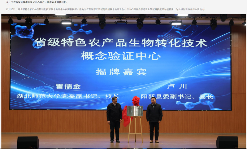 (通讯员 余翔 秦文权)2025年12月31日,阳新县政府指定的移动政务客户端“云上阳新”正式发布“2025年阳新县十大时政经济类新闻”。其中,由阳新县现代农业产业技术研究院(后称“研究院”)主导建设的省级特色农产品生物转化技术概念验证中心上榜,这一成果标志着阳新县域农业科技创新迈入新阶段。