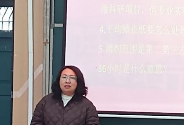 会议伊始,学院党委副书记李文静发表讲话。她首先对顺利通过初试的同学们表示祝贺,并分析了当前的考研形势与复试政策。她指出,复试是研究生招生考试的重要组成部分,希望同学们高度重视、精心准备,以积极心态迎接挑战。她鼓励大家在最后冲刺阶段保持定力,合理规划复习节奏,同时注意调节身心状态,展现出生科学子扎实的专业素养和良好的精神风貌。