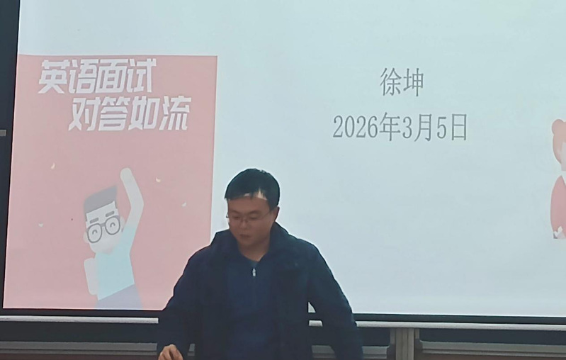 随后,教师徐坤专题分享英语口语面试技巧。他从自我介绍、专业英语问答层面展开,分析了常见问题与应答策略。徐坤强调,口语表达重在流畅与自信,建议同学们提前准备素材,勤加练习,避免生搬硬套。