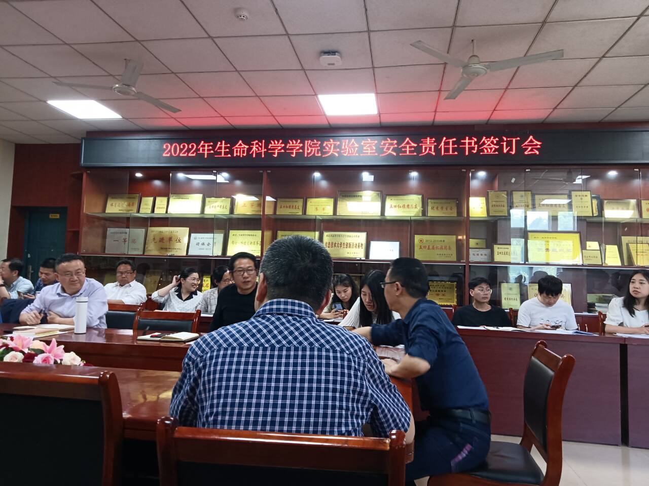 2022年5月5日下午,应国资处等部门要求,实验室安全责任书签订会在生科院8306会议室顺利召开,我院书记陈雄文、院长侯建军、副院长陈亮、副院长涂俊铭以及全体教师出席会议。
