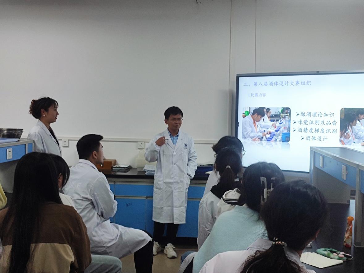 中心迅速对报名初赛的学生开展培训工作。由中心助理实验师郭倩老师和董卫卫博士、余翔副教授对报名初赛的同学展开培训和遴选。培训内容围绕省评委考核要求设置,以实操为主,辅以理论授课,主要侧重于味觉识别和酒精梯度识别两个方面,味觉识别:按照国家品酒师考评浓度标准。酒精度浓度梯度识别:统一配制五个梯度供报名学生训练。通过培训和遴选,最终确定10人入选省赛,后续中心将继续对这10位同学进行香型、白酒酒体设计、啤酒酒体设计等实操和理论内容的培训。最后,预祝同学们在本次比赛中取得优异成绩!(郭倩 供稿/邵海晨 审核)
